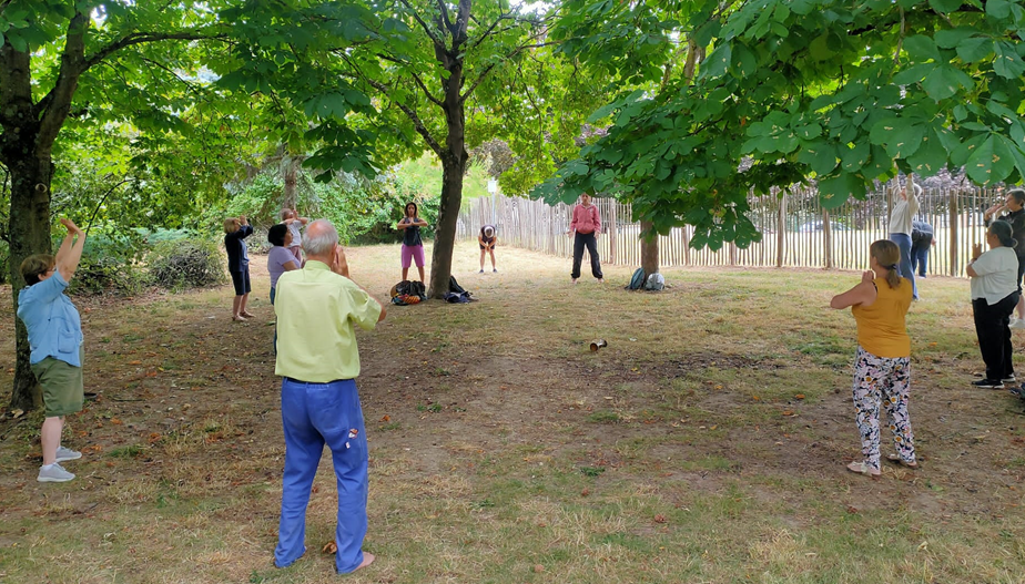Chacun fait à son rythme, en pleine conscience, selon ses possibilités physiques et sa capacité respiratoire, à l’écoute de son corps, de ses sensations corporelles, proprioceptives et spirituelles.